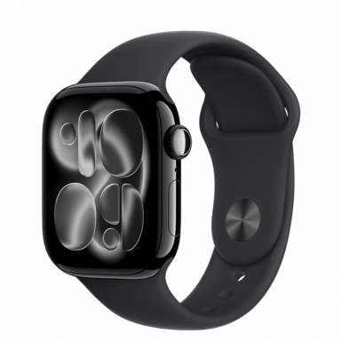 Apple Watch Series 11 GPS + Cellular 42mm Jet Black Aluminum Case with Black Sport Band - M/L (MF854)