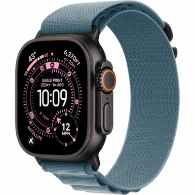 Apple Watch Ultra 3 GPS + Cellular 49mm Black Titanium Case with Light Blue Alpine Loop - Large (MF254+MG9M4)