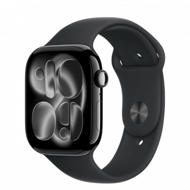 Apple Watch Series 11 GPS 46mm Jet Black Aluminum Case with Black Sport Band - S/M (MEUW4)