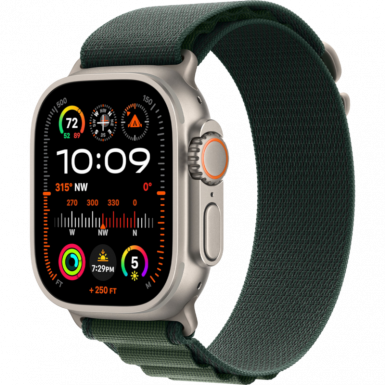 Apple Watch Ultra 2 GPS + Cellular 49mm Natural Titanium Case with Dark Green Alpine Loop - Medium (MXMV3)