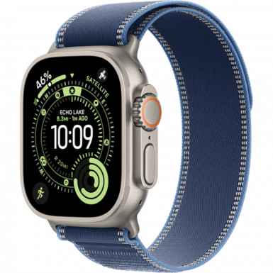 Apple Watch Ultra 3 GPS + Cellular 49mm Natural Titanium Case with Blue/Bright Blue Trail Loop - S/M (MEWR4)