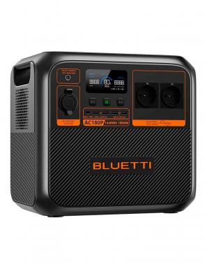 Bluetti AC180P — портативна електростанція ємністю 1440 Вт·год та потужністю 1800 Вт (пікова до 2700 Вт).